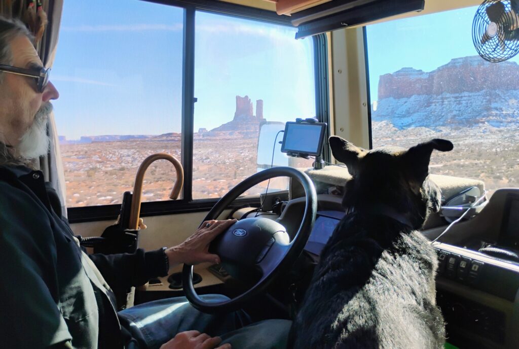 We are in Tuba City, AZ tonight. We stopped here because we were here on our way to Tucson in November and liked it, but when we got here, Mark tried to take our puppy, Price, out to go potty, and 3 loose dogs tried to come at him. Tucson was so freaked, she still hasn’t gone out to do her thing, and it’s bedtime. Mark says we’ll need to find another place to stay next time. It’s too bad because this is a good halfway point, but we need a place that’s safe for the dogs.